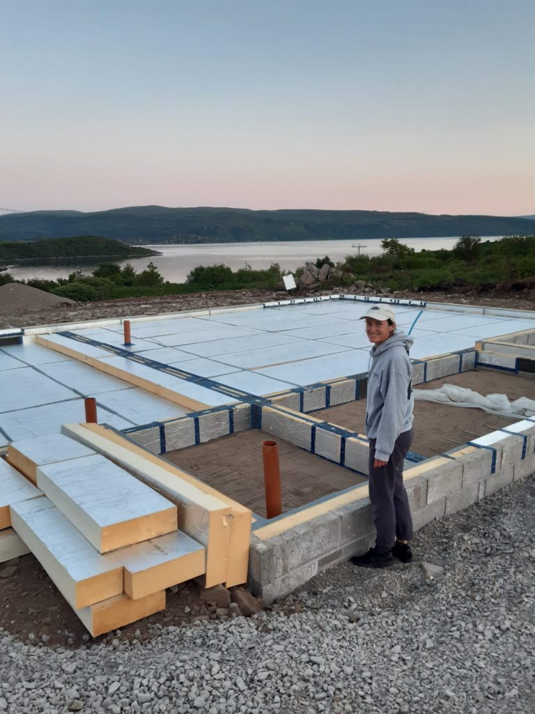 So very simply, for our foundations our concrete slab needs to be surrounded by insulation – below the slab (300mm of it) and to the side of it a 150mm thick wall of the same insulation. Needless to say, none of the build team had ever seen as much insulation put under a slab before!