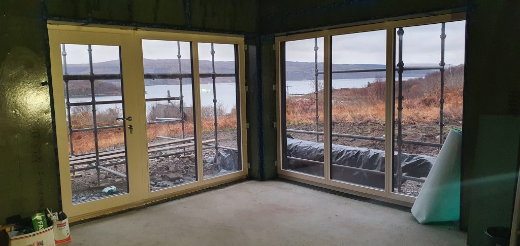 Passivhaus Homes (PHH – who supplied our kit) sourced the windows for us, through Austrian window supplier Katzbeck. PHH are increasingly using UK based Green Building Store for windows, but unfortunately they don’t currently supply Scotland, so we had to import. That said, the windows are extremely good, aesthetically, functionally and in terms of their extremely high thermal performance (which we need for our house design and location to achieve the Passivhaus standard). Whilst a lot of mid-range manufacturers have similar high performance glazing, apparently the real difference is in the frames where most of the heat loss and thermal bridging occurs.