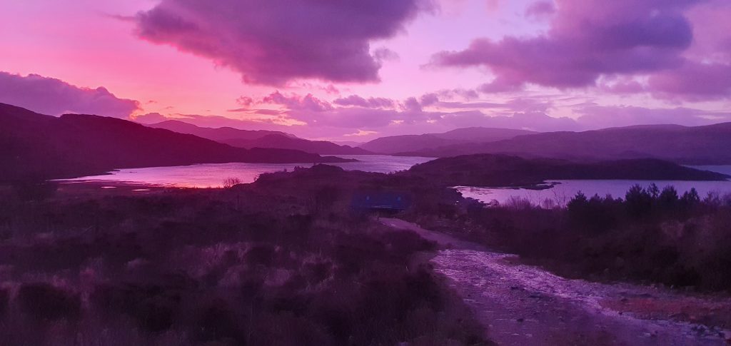 My final weekend in the intensive cladding phase also happened to coincide with Storm Malik. After an overnight trip to Glasgow, when the worst of the winds were blowing, I arrived back in Ardnamurchan on Saturday lunchtime to a 36 hour power cut. Fortunately I’d charged up my power tools before I’d left for Glasgow, so at least I could keep on with the cladding until the batteries ran out on all of them. Whilst one night in the caravan didn’t feel too bad, as the sun set on Sunday, I have to admit I did like seeing lights appear from houses across the bay showing me the power had come back on.