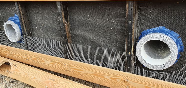 I couldn’t put it off any longer: we finally had a date for our blown-in insulation and that meant the big 170mm ducts had to be put through the front wall before that happened. Just to make it a bit more challenging, the MVHR machine itself hadn’t arrived, so I just had to hope that all my measurements – above and below where the unit would sit on the wall – were absolutely accurate. Nothing like adding in even more challenge and potential jeopardy to an already pretty daunting job!