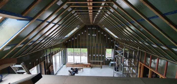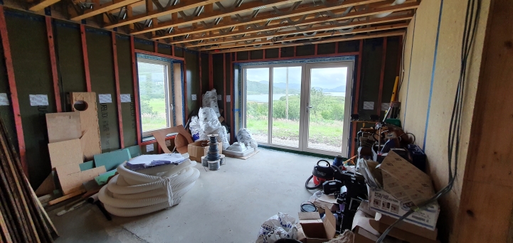 Getting to this point involved building the remaining partition walls. I watched the obligatory youtube videos showing me how to do it, talked to my brother a bit and then spent a morning with local carpenter, Scott McKenzie. Scott built the first wall, and then in Generation Game spirit, I was left to build my own by myself. They haven’t turned out too bad – a couple of small annoyances (there’s always one screw that you can’t get out!), and major education that no timber frame walls are totally perfect. This fact came from my expert builder/engineer brother, when I called him up feeling totally exasperated having measured and measured again, used my big set square, and I just couldn’t get things to add up. Big smile on my brother’s face as he told me that I would have to settle for less than perfection!