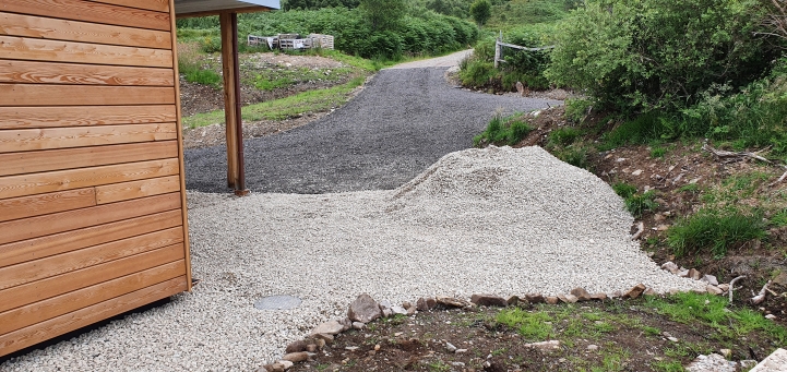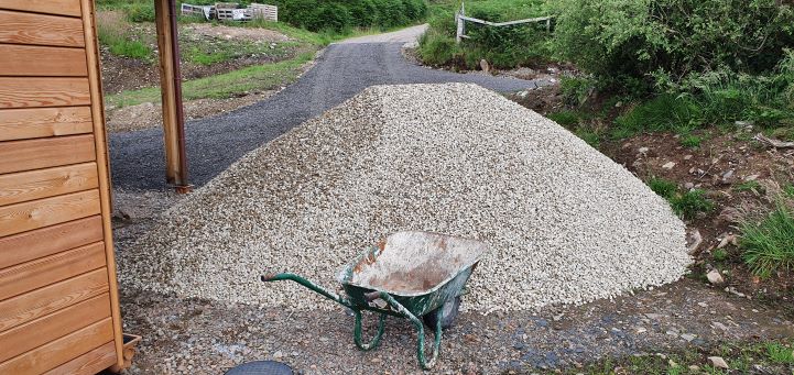 In the meantime, the quartz chippings finally arrived, 20 tonnes of them. So I had a fairly strenuous two days filling up about 220 barrows worth of gravel and redistributing around the house. I was extremely grateful for the help of my two neighbours, Pete and Sam, who individually arrived exactly the right moment on each of the two days to help with a bit of gravel shovelling, and keep me motivated. And if anyone is planning on doing this sort of task: definitely count your barrow loads!