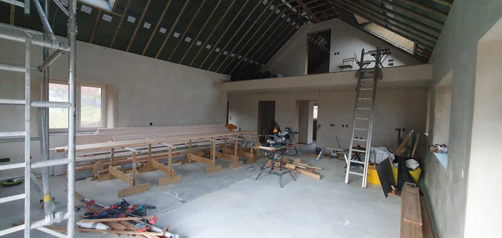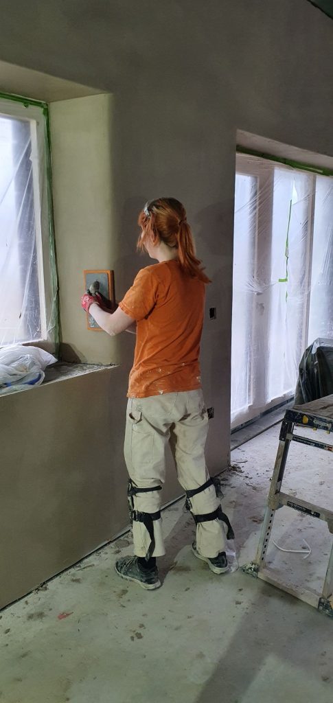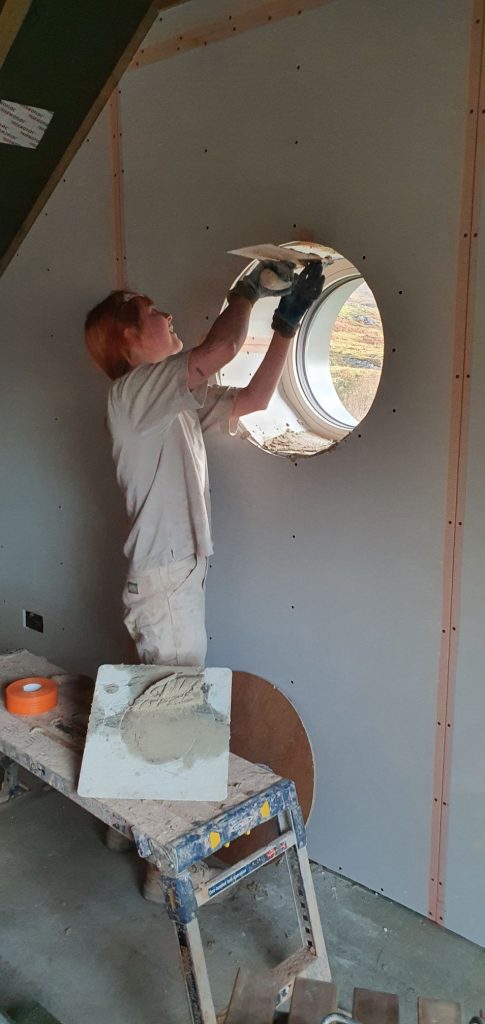 As with many of the people who we’ve been lucky enough to have contributing to our house build, it was again a real pleasure to have true craftspeople involved and be able to watch them working. Based on the Isle of Bute, Mal has a nationwide reputation for his clay plastering expertise. Gemma is newer to the plastering game, having initially done a fine art degree and only switching to plastering during the pandemic. She is already building up a strong reputation though – well-earned. They also introduced me to a whole load of new different podcasts and music!