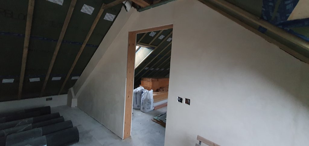 Almost 1 year to the day from when we first met, Gemma and fellow (expert) clayworks plasterer Mal arrived at Saorsa armed with all their kit. I had been warned that plastering was messy – and it really is! But regardless of the mess, it was a really satisfying feeling at the end of each day seeing the house transformed much closer to its finished state (as well as the nasty plasterboard being covered over).