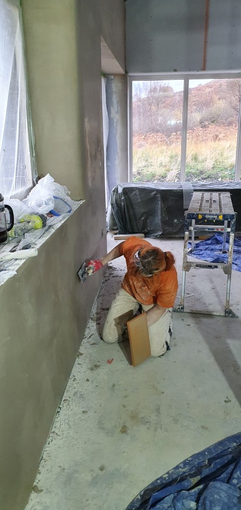 Whilst we only had a very brief and casual conversation at the time about our project in Ardnamurchan, I tucked her email address away in my phone just in case. Gemma had just completed a clayworks plastering course when I met her at COP, and was full of the joy of working with natural materials rather than the much nastier gypsum products. So 6 months later, when I was beginning to think about plastering, I decided to get in touch. Rather than look for references, I trusted my instinct, mostly based on that feeling I had got when we met that values aligned and she would care about the work she would be doing for us.