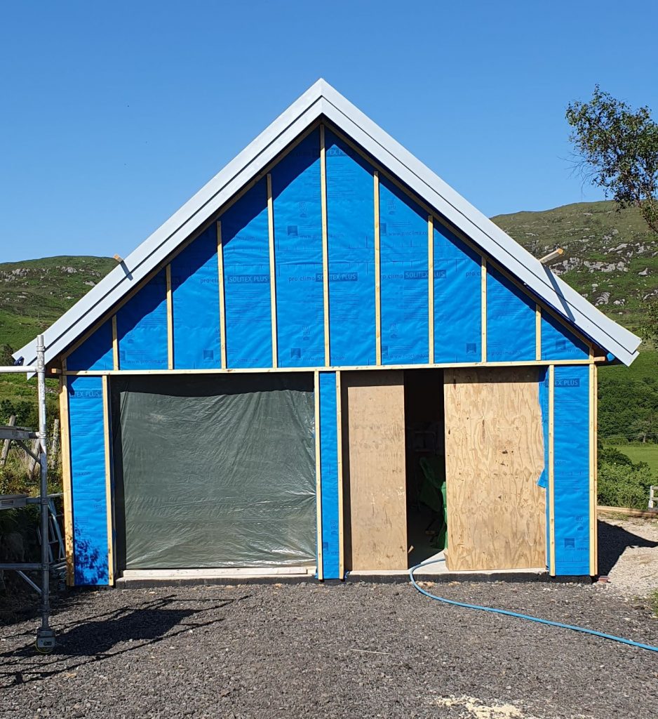 I finally worked out how big the spacers needed to be at the end of the sarking, how to maintain the air gap between the membrane and the sarking, what height the top of the fascia board needed to be to provide the ‘kick’ for the first slate and then how to actually fix and overlap the two fascia boards together. After doing all of that, it was then just a case of physically wrestling with the 4.5m boards to get them fixed – I’ve got better at that over the past few months, and in this case built a couple of support jigs which provided the extra pair of hands I needed to get the first nails in.