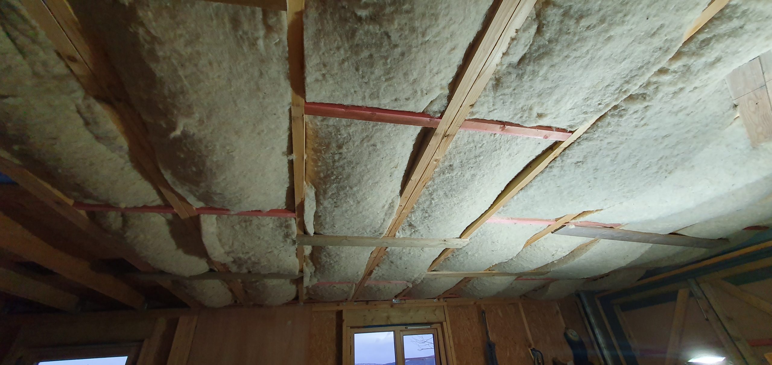 Taking far longer than we thought possible to put not that many boards on the first layer, we then moved to the second layer. We thought we’d get away with 45mm screws for this, but turned out they just weren’t quite long enough. Given it was by then New Years Eve, and we travelled back south on the 2nd January, there was no opportunity to buy longer ones, so we couldn’t finish it. I wasn’t quite sure if I’d be able to do it by myself on my next trip up in January. But turned out (after quite a lot of slightly weird dreams about ways to lift plasterboards by myself onto a lifter) it actually wasn’t too difficult after all, and so I managed to get the job finished on day 2 of my January trip.