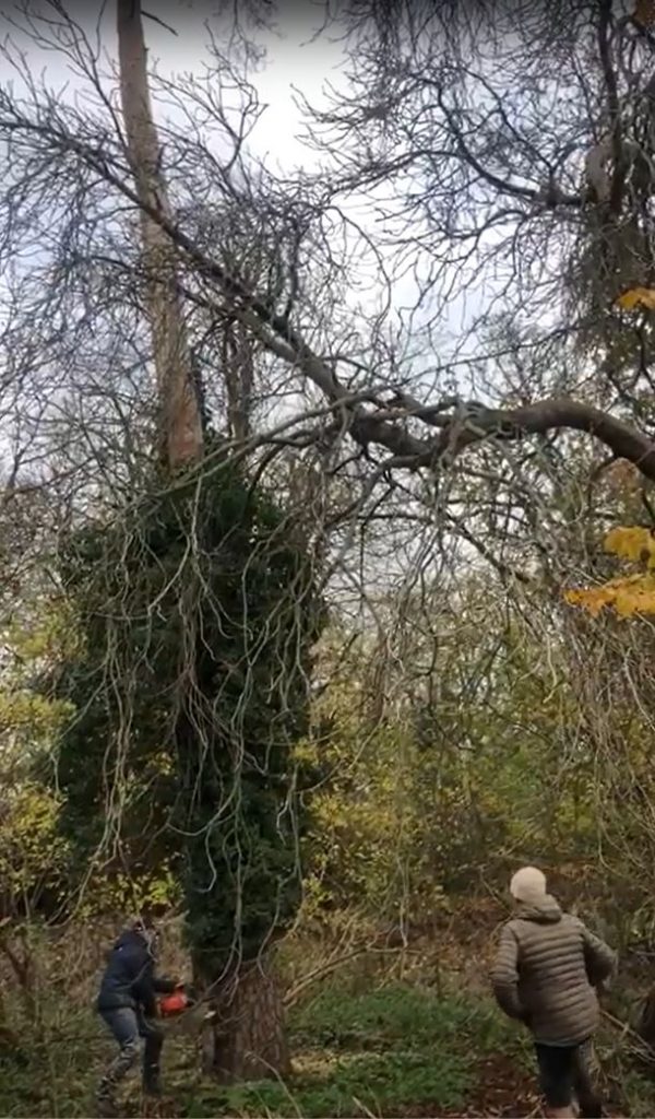 In our previous house, Scotsgrove End, we had a small woodland area which when I first moved to the house had a very dominant, very tall and straight Scots pine tree at its centre. Unfortunately the tree died – we think the top got struck by lightening – and Steve, along with friend Clive, then fairly expertly cut it down. It needed to be a fairly expert cut, as if the tree had come down in any direction other than it did, it would have crashed across the A road running alongside the wood, which doesn’t quite bear thinking about!
